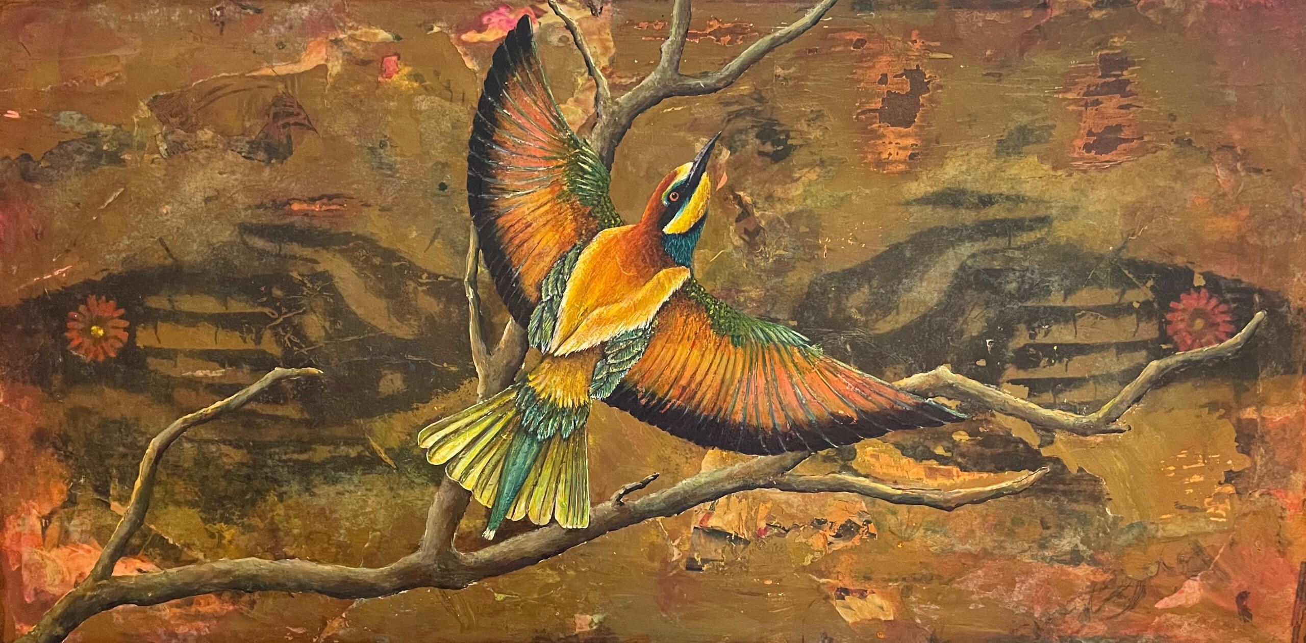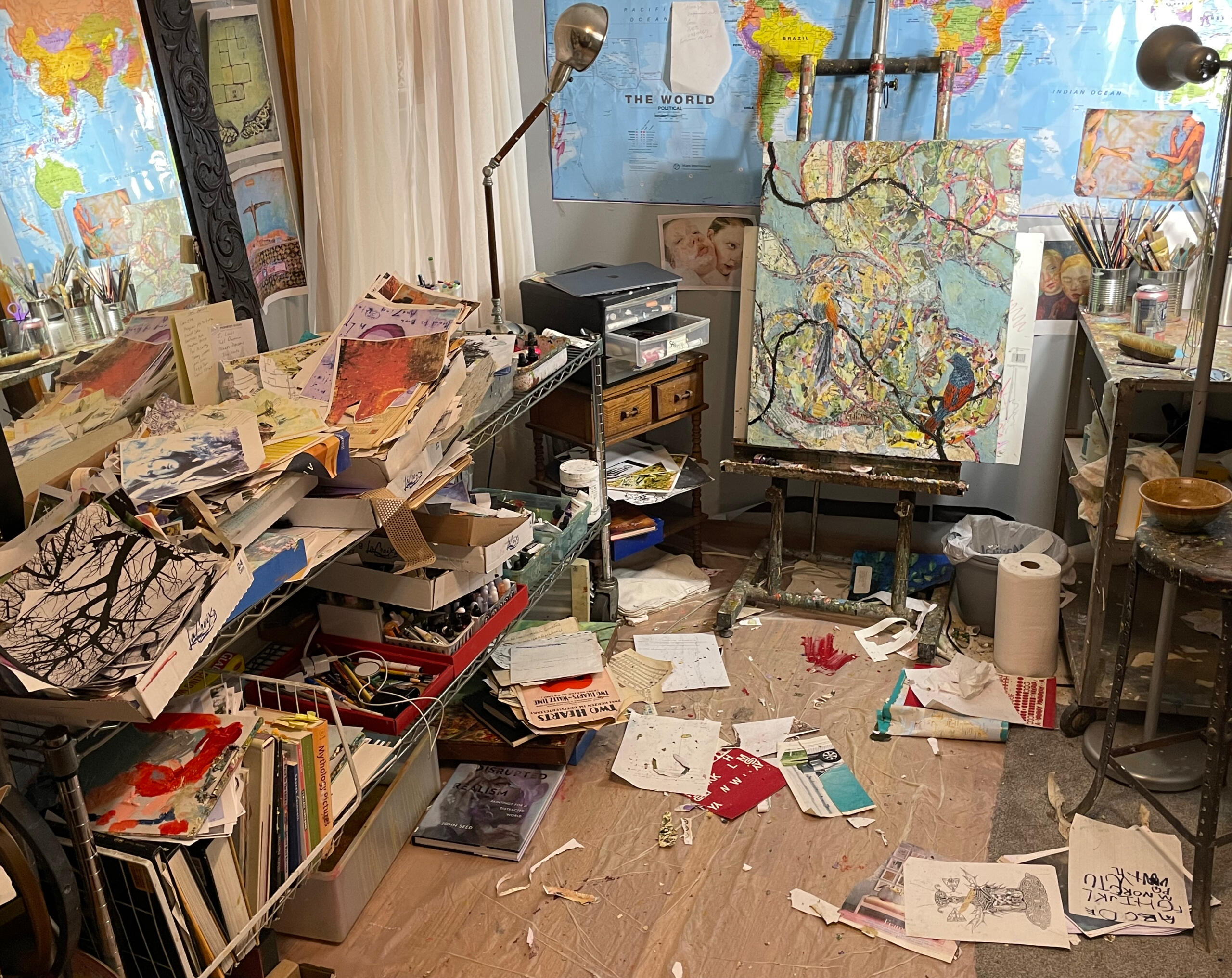 My mixed media paintings, inspired by folk art, mythology, symbols, and nature, focus on the fine balance of extremes and everyday observations of life. My paintings contain images both figurative and botanical, while the surfaces retain lush colors and a rich weathered texture. I incorporate printmaking, collage, pattern, and text into the process, creating contemporary icons through a variety of media. I consider my work a meditation on the common threads interwoven throughout time.