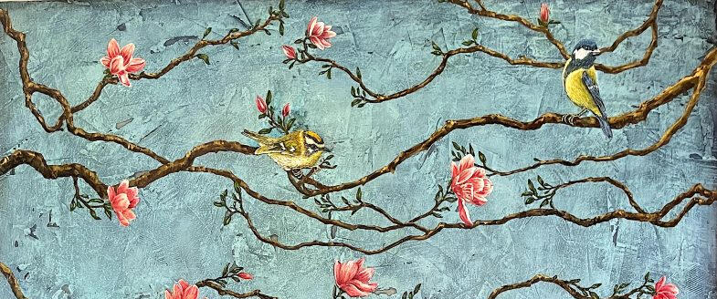 Browse through my work and choose any elements, imagery, colors, patterns which you would like to incorporate. I am happy to paint unique pieces just for you; composing a gorgeous piece or series, incorporating images, text and symbols which personalize your story or concept.