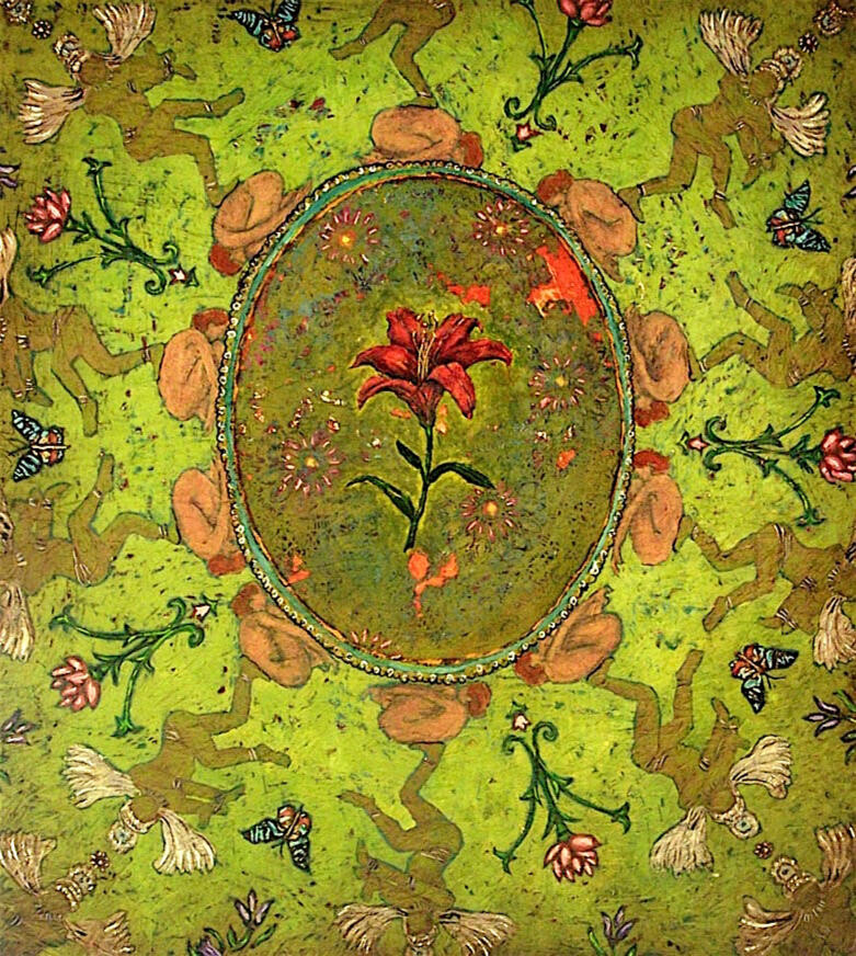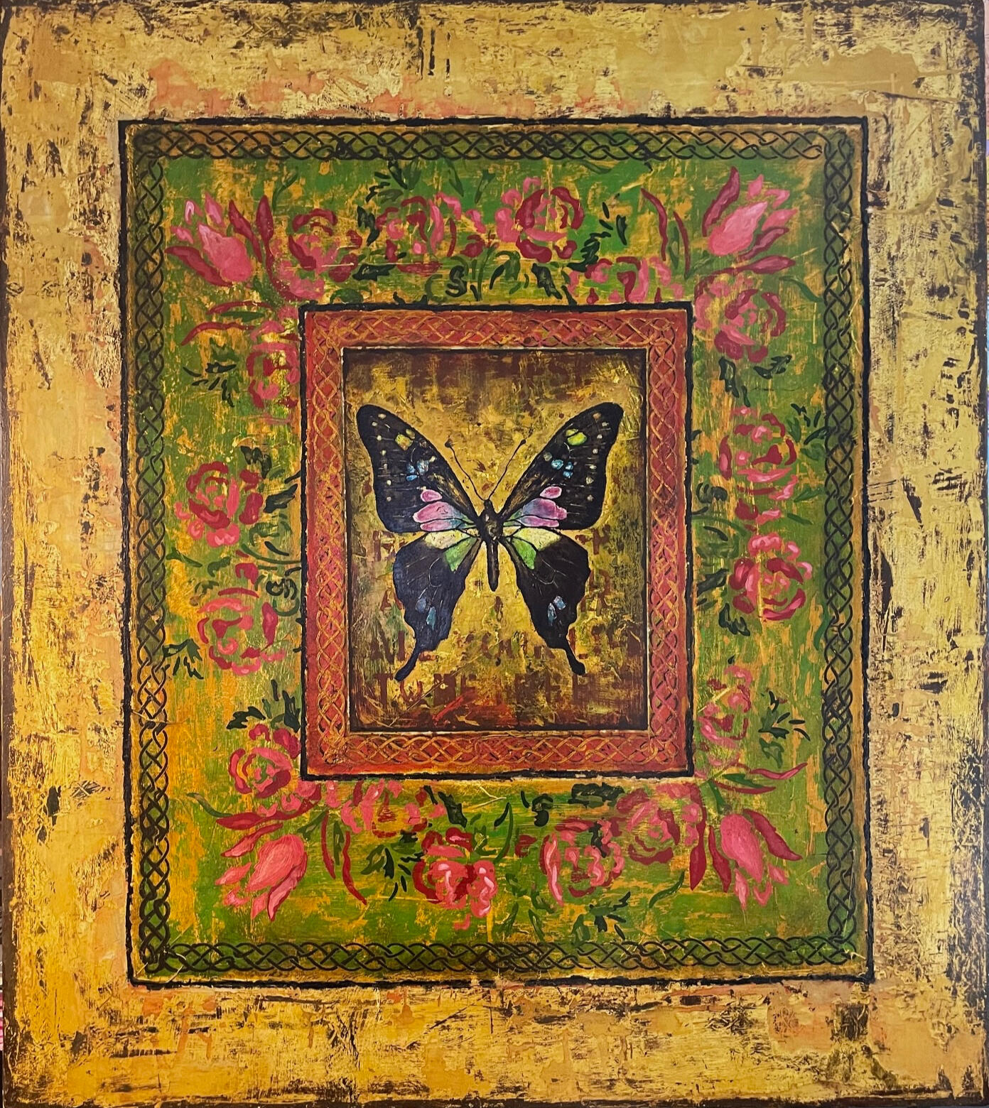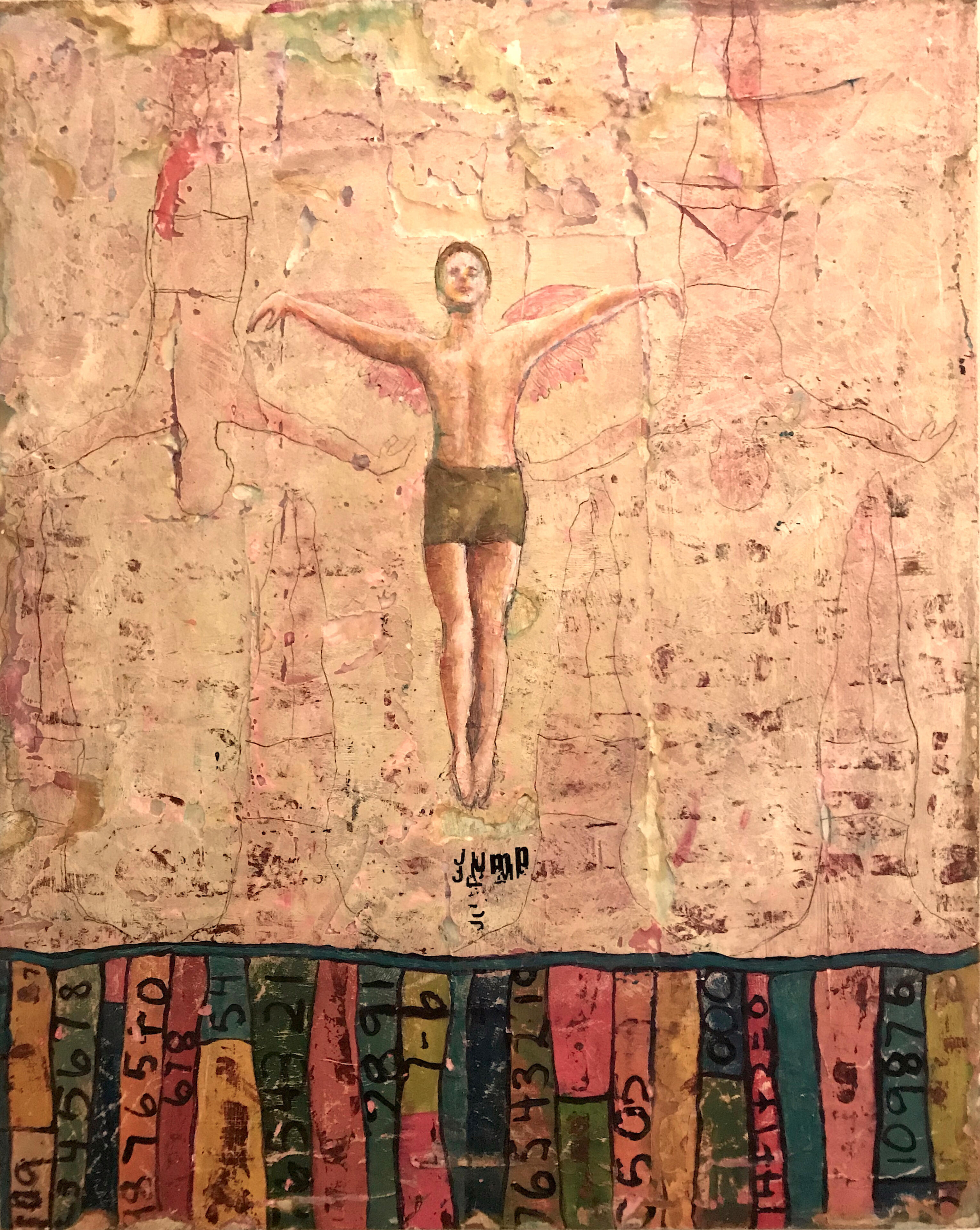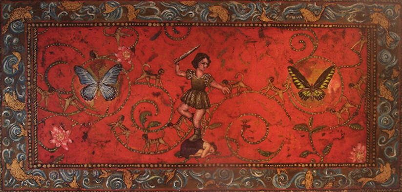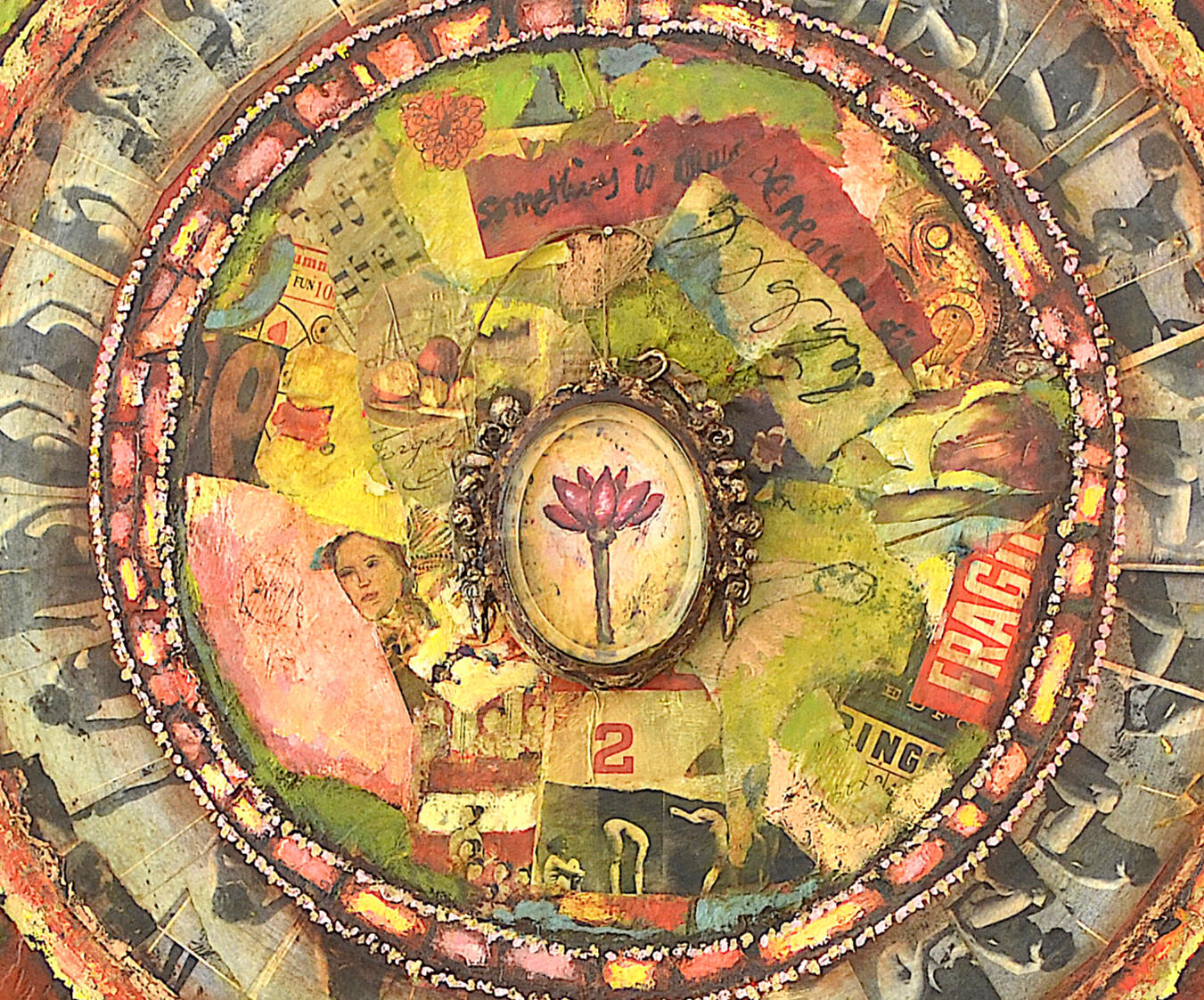 My mixed media paintings, inspired by folk art, mythology, symbols, and nature, focus on the fine balance of extremes and everyday observations of life. My paintings contain images both figurative and botanical, while the surfaces retain lush colors and a rich weathered texture. I incorporate printmaking, collage, pattern, and text into the process, creating contemporary icons through a variety of media. I consider my work a meditation on the common threads interwoven throughout time.